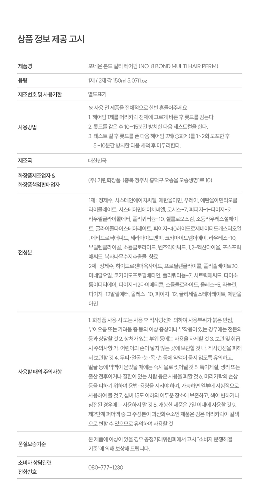 제조자/제조판매업자 | (주)기린화장품 |