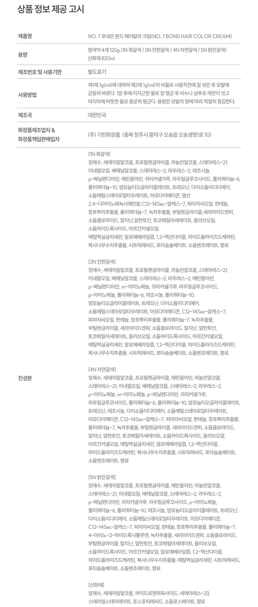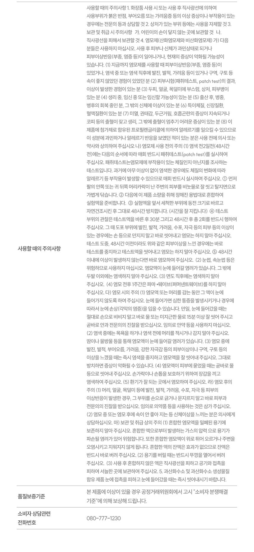 포장단위별 용량(중량) | 1제 120g (6개단위 산화제820ml 1개) |