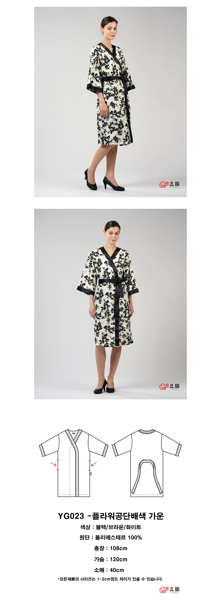 --- [요들] 플라워 공단 배색 가운 YG023 -사은품제외-