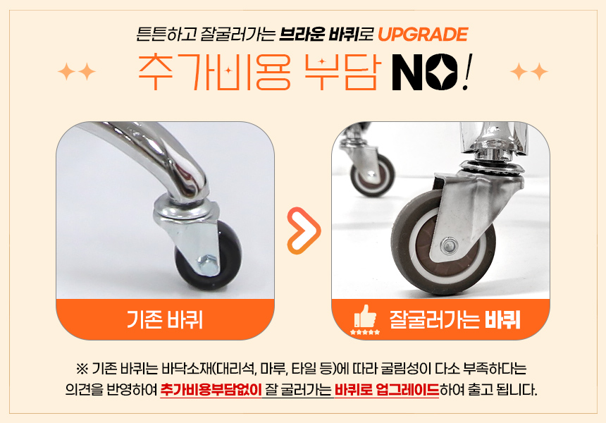 바퀴교체를 원하시는 경우 추가구성옵션에서 우레탄바퀴같이 구매해주세요~