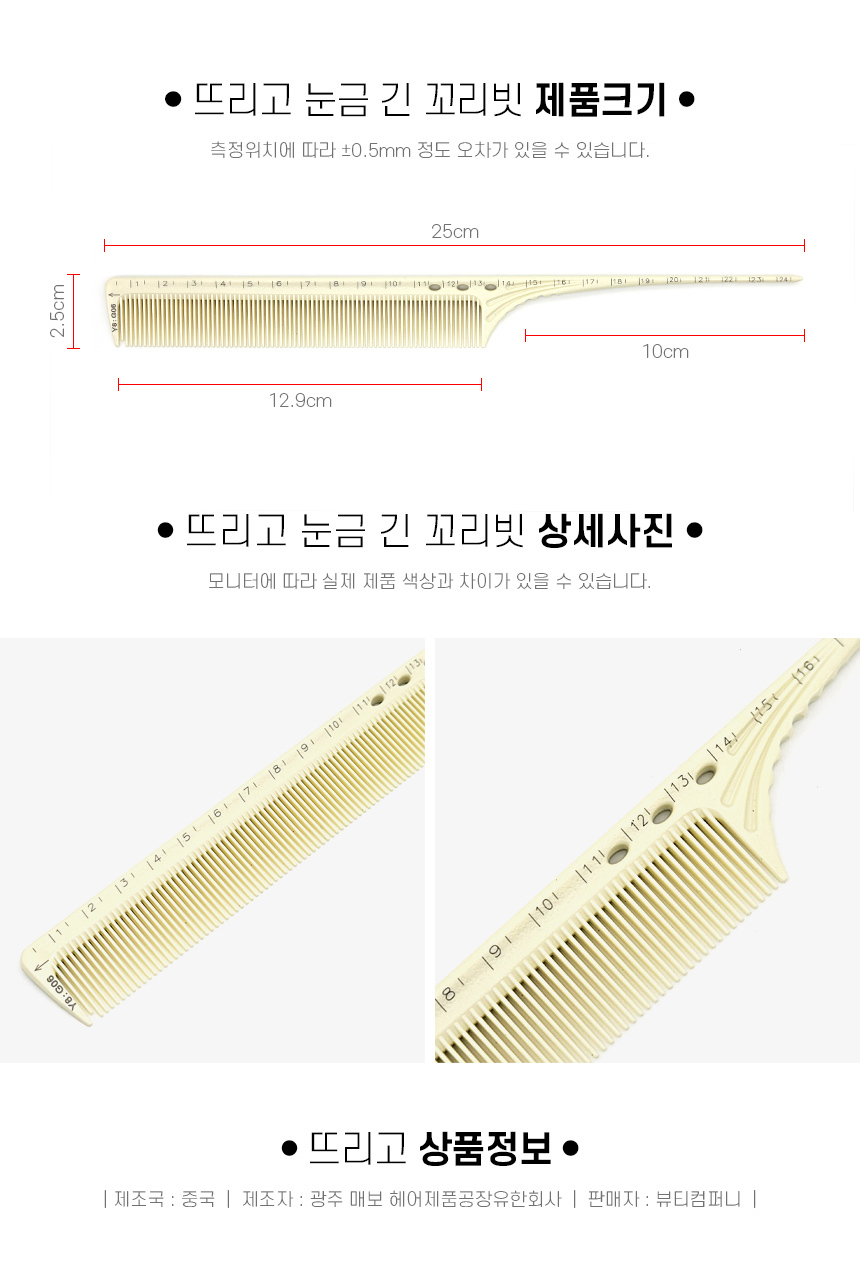 [뜨리고] 눈금 긴 꼬리빗 ◆Y8-G06◆ -사은품제외-