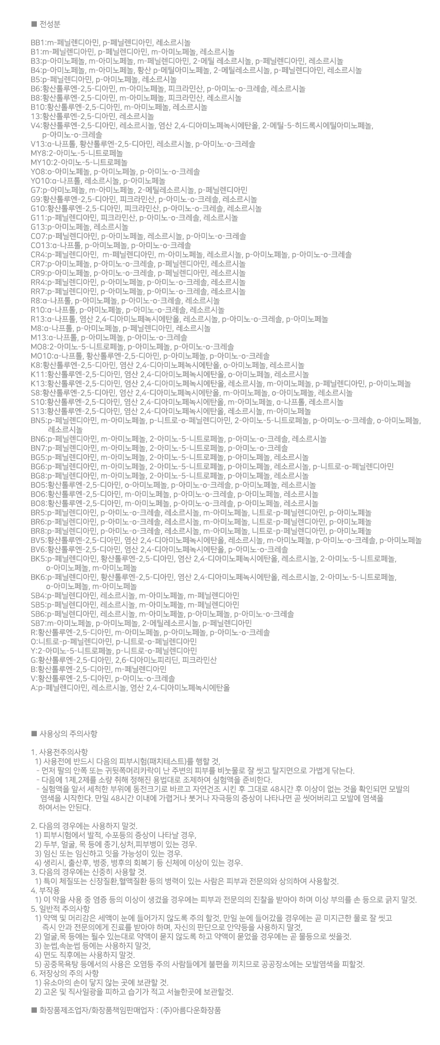 제조자/제조판매업자 아름다운화장품