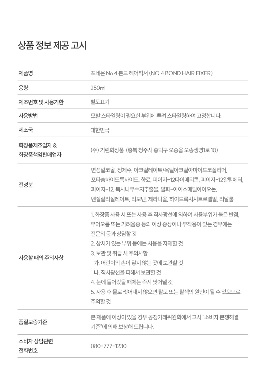 제조자/제조판매업자 | (주)기린화장품 |