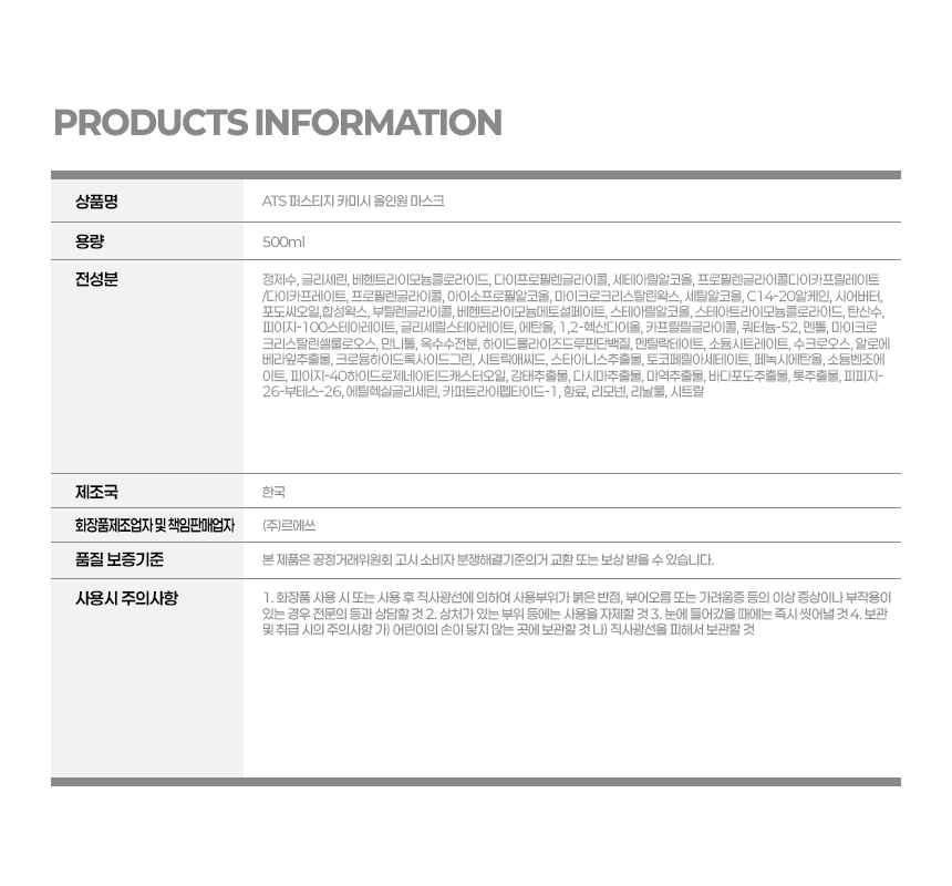 &&& [그리에이트] 르에쓰 ATS 퍼스티지 카미시 올인원 마스크 500ml