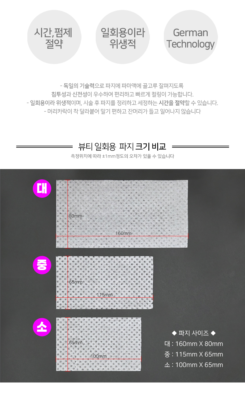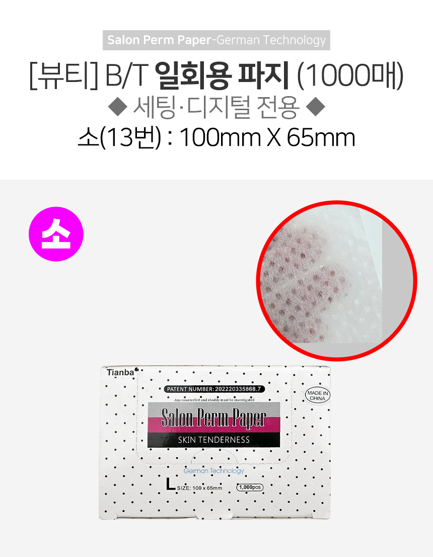 [뷰티] B/T 일회용 파지 (1000매) (세팅·디지털전용) ◆소◆ 100 X 65mm