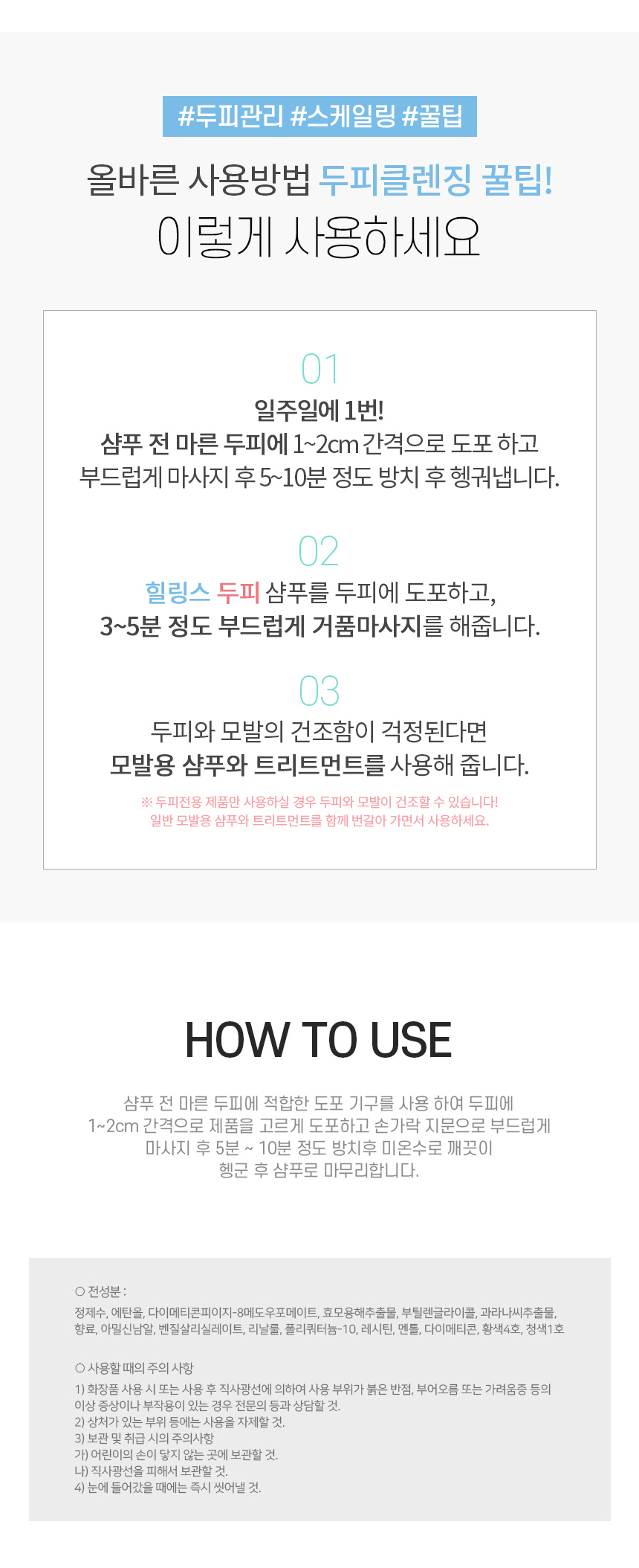 두피가 건조하거나 비듬, 각질이 많은 두피에 사용!